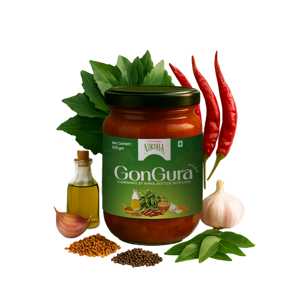 Our Gongura Pickle is made using fresh sorrel leaves (gongura) and traditional spices. It has a bold, tangy, and spicy taste that Telugu families love. Perfect with hot rice and ghee. No added colours or preservatives — just homemade goodness.